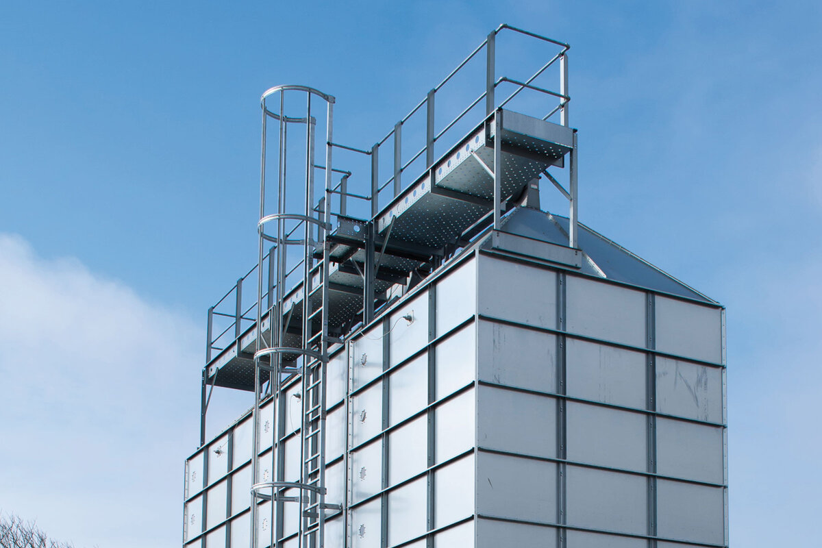 ... für die Lagerung von Getreide oder mehlige Güter mit 45° oder 60° Auslauftrichter. Einsetzbar als kleines Komponentensilo oder als großes Lagersilo mit Kapazitäten von 0,3 m3 bis 67 m3.
